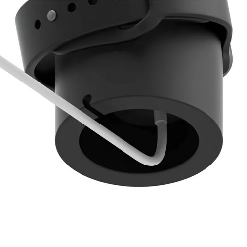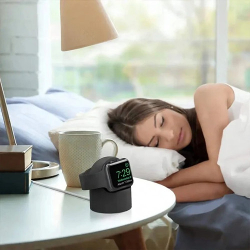 Підставка виготовлена з якісного силікону з приємною матовою поверхнею чорного кольору. Матеріал спеціально зроблений не надто жорстким — це дозволяє легко встановлювати кабель всередину та надійно фіксувати зарядний модуль. При цьому тримач добре утримує зарядку, не ковзає та забезпечує стабільне положення годинника під час заряджання.