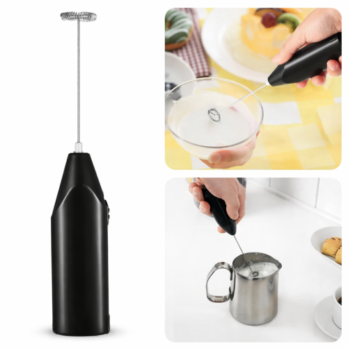 Ручний піноутворювач працює від батарейок і швидко перетворює молоко на ніжну повітряну піну. Достатньо занурити вінчик у чашку — і вже за 10–20 секунд ви отримаєте густу текстуру для улюблених напоїв.