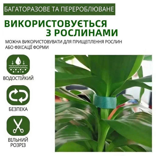 Багаторазова нейлонова стрічка для підв’язки допомагає акуратно закріпити стебла рослин до опори або треліси. М’який матеріал не травмує стебла, а зручна система фіксації дозволяє легко регулювати натяг. Ідеально підходить для томатів, огірків, квітів та декоративних рослин.
